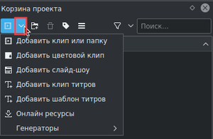 Добавляйте клипы, используя «Корзину проекта» плюс «Добавить клип». Используйте вкладку учебных клипов, сохраняйте получившиеся результаты по пути «Файл» — «Сохранить».